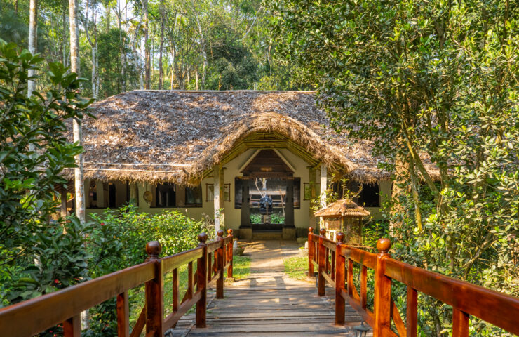 Nestled in the hills near the Periyar Wildlife Sanctuary, CGH Spice Village is an eco-resort that offers a unique retreat in the heart of Thekkady.