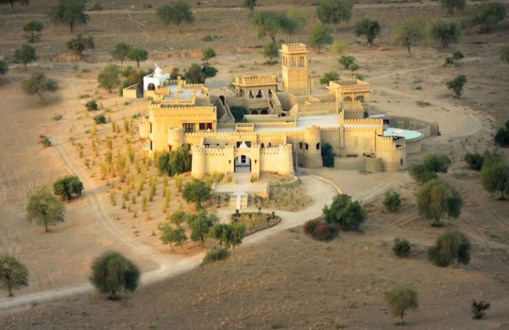 Shimmering like an oasis amidst the Thar desert’s golden dunes, Chanoud Garh, a lavish 300-year-old fort-palace combines contemporary luxury with imperial majesty.