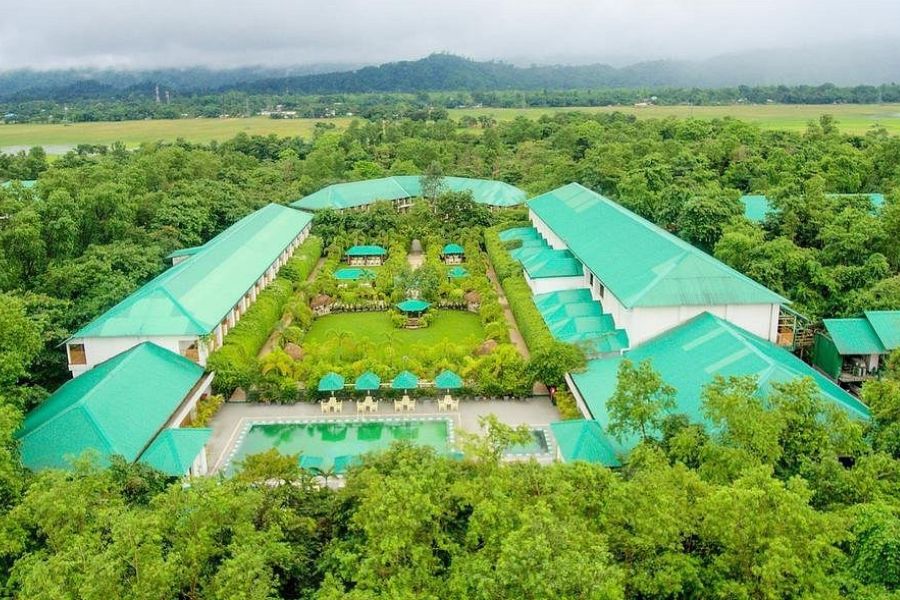 As a Kaziranga National Park safari lodge, it suits travellers who appreciate returning from game drives to open lawns, shaded walkways, and social spaces rather than a purely functional jungle camp.