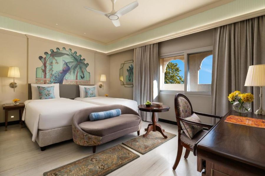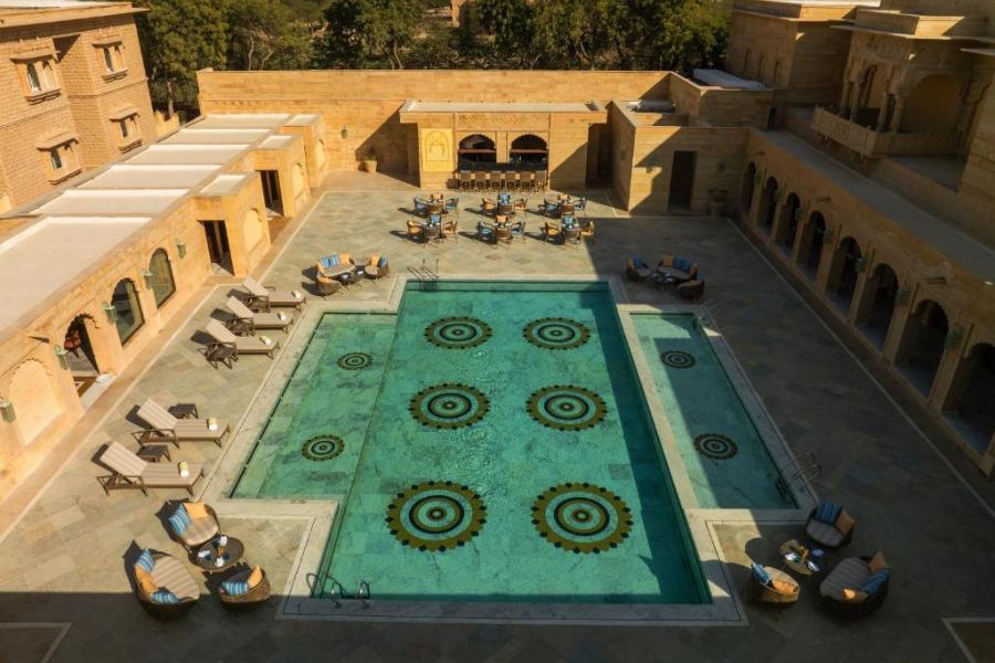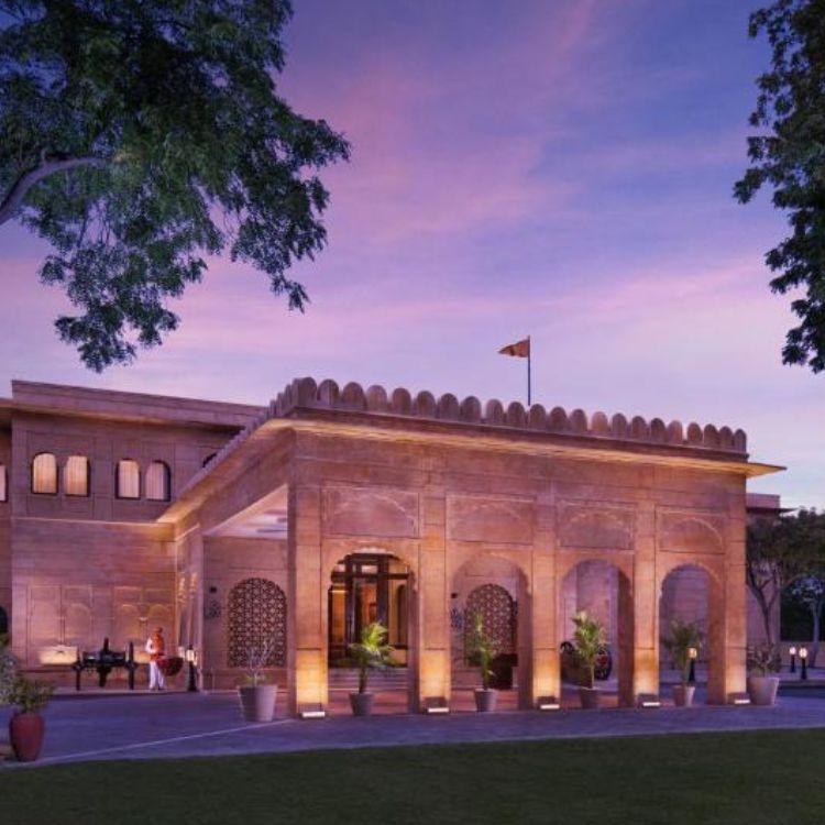 Its golden façade, leafy courtyards and open-air spaces echo the region’s architectural traditions, while rooms provide modern comfort suitable for longer journeys. Located close to the fort, markets and dunes, the hotel serves as a practical and welcoming base for itineraries that blend culture, history and desert landscapes. It offers dependable amenities, warm service and generous public areas that support a relaxed pace during multi-stop Rajasthan tours.