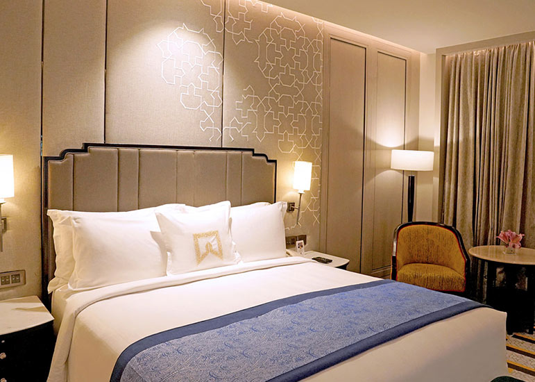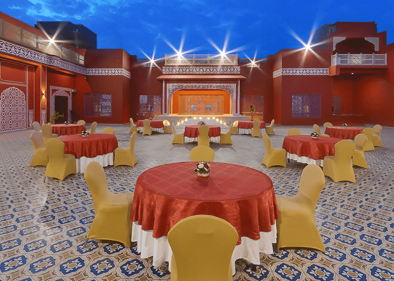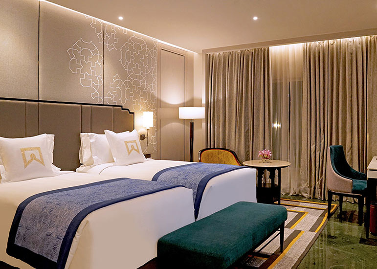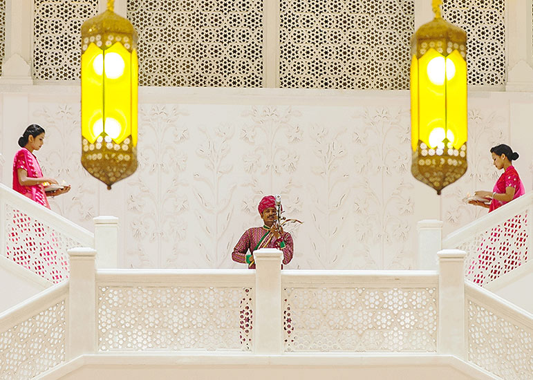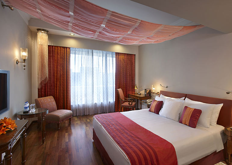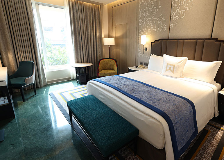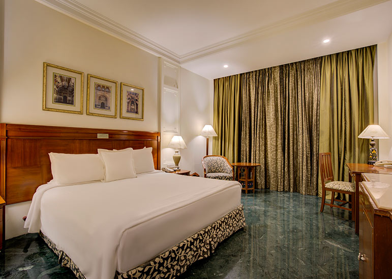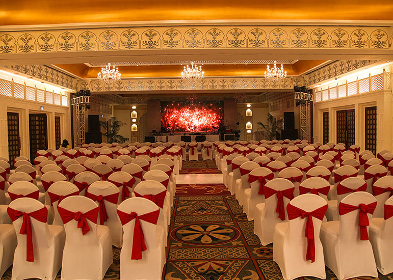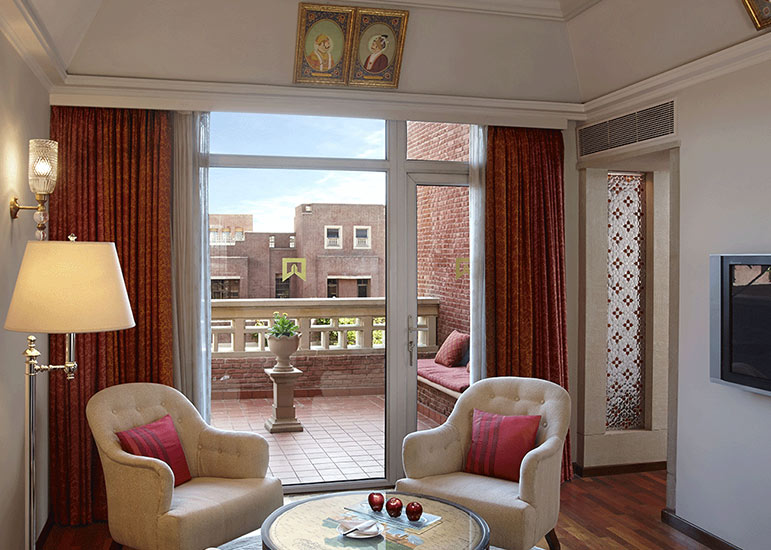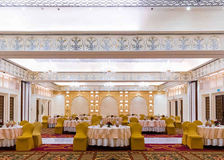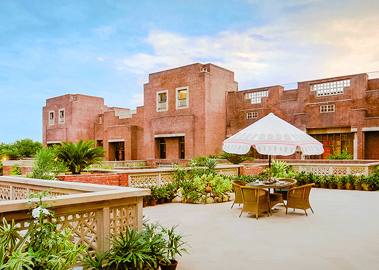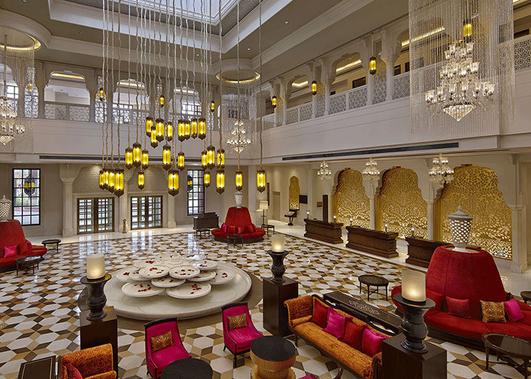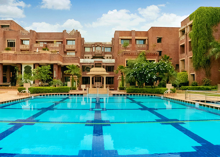 ITC Rajputana rises elegantly in the heart of Jaipur, reflecting the city’s royal legacy through its red sandstone façade, broad corridors, and traditional Rajasthani design.