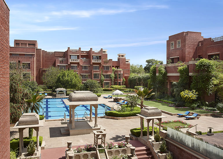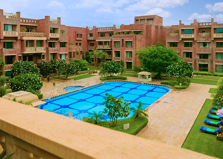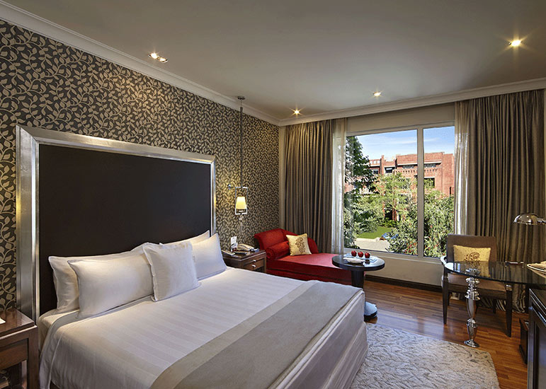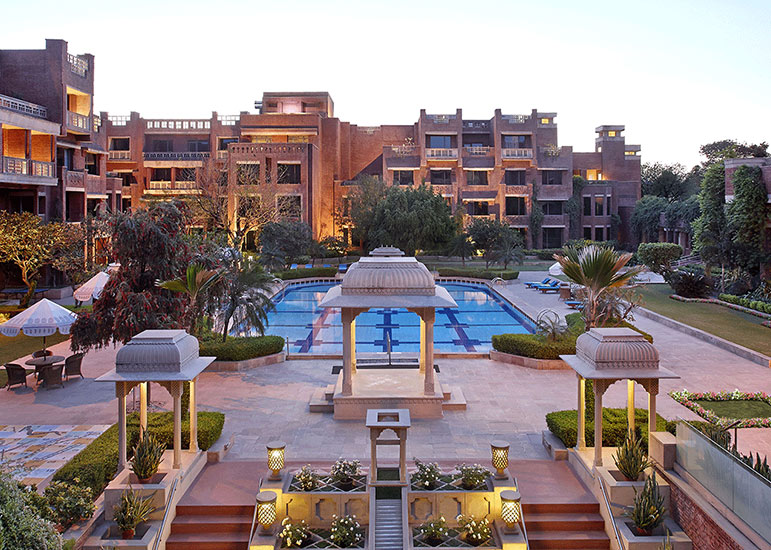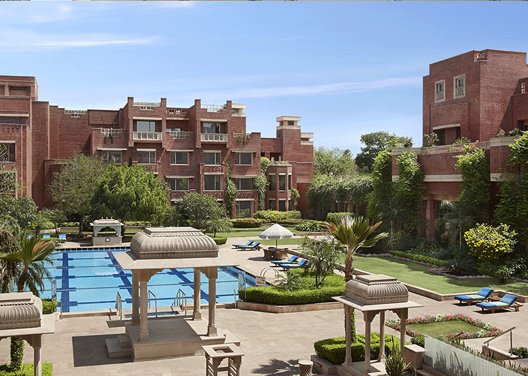 Inspired by the region’s palatial architecture, the hotel combines heritage aesthetics with modern luxury to create an environment that feels expansive, warm, and richly cultural. Courtyards, fountains, and long colonnades enhance the sense of calm after days spent exploring the Pink City. Its excellent location makes it ideal for Rajasthan tours or broader Golden Triangle India journeys. For travellers seeking comfort, culture, and convenience, ITC Rajputana delivers beautifully.
