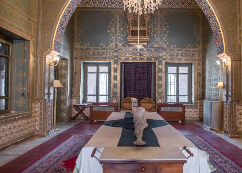 Built in striking red sandstone, the palace reflects a blend of Indo-Saracenic architecture, grand courtyards and stately interiors that evoke a time of ceremonial life and quiet power.