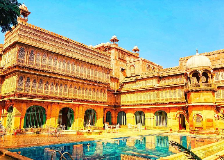Laxmi Niwas Palace stands as one of Rajasthan’s most distinctive royal residences, offering travellers on India Culture Tours the rare opportunity to stay within a former palace of the Bikaner royal family.
