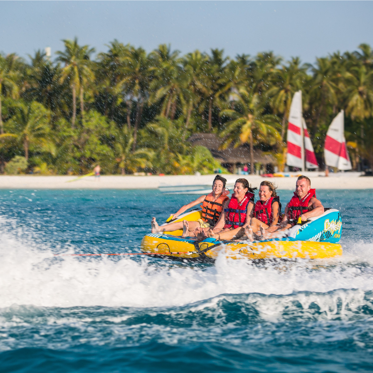 • One resort with both Maldives diving and snorkeling plus watersports in one ocean playground.